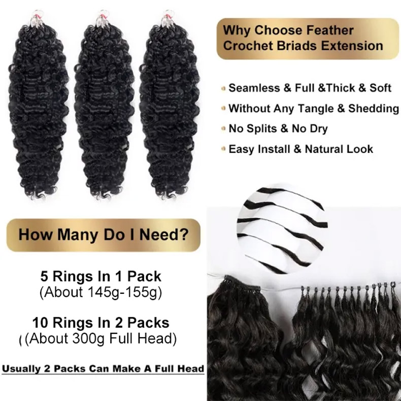 【Feather Crochet Braids】Burmese Curly Micro Ring Loop Crochet Soft Human Hair Extension For Black Women Protective Hairstyle 5pcs/pack ULH239