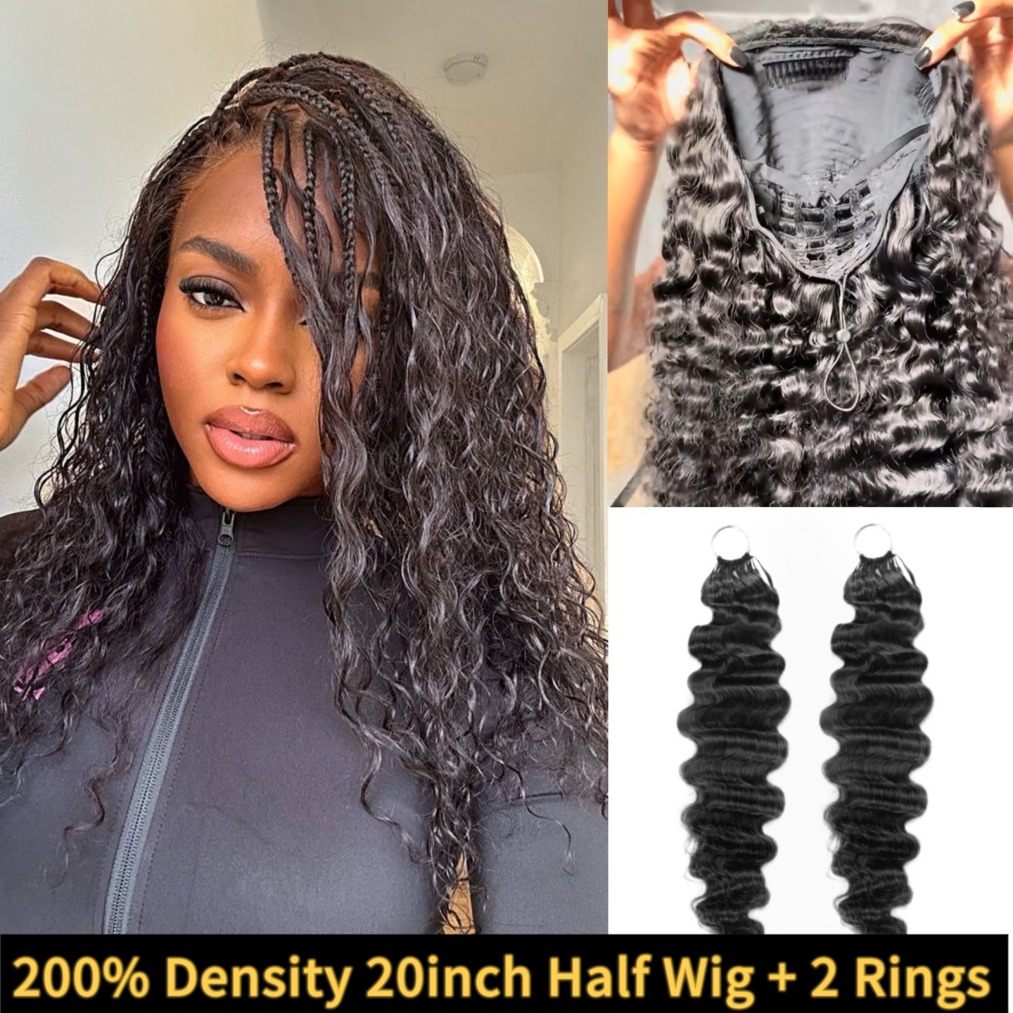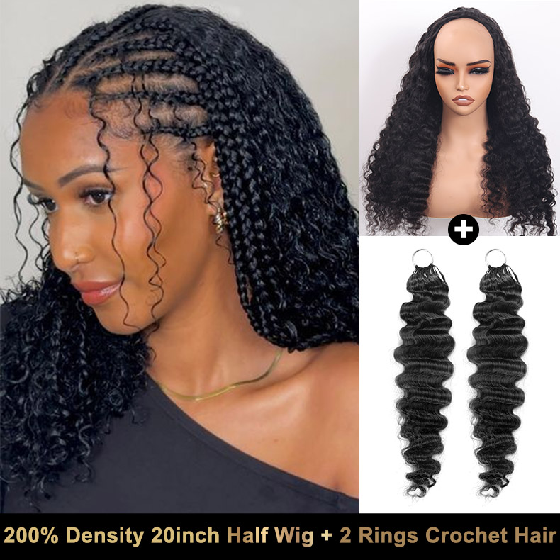 200 density half wig + 2rings crochet hair