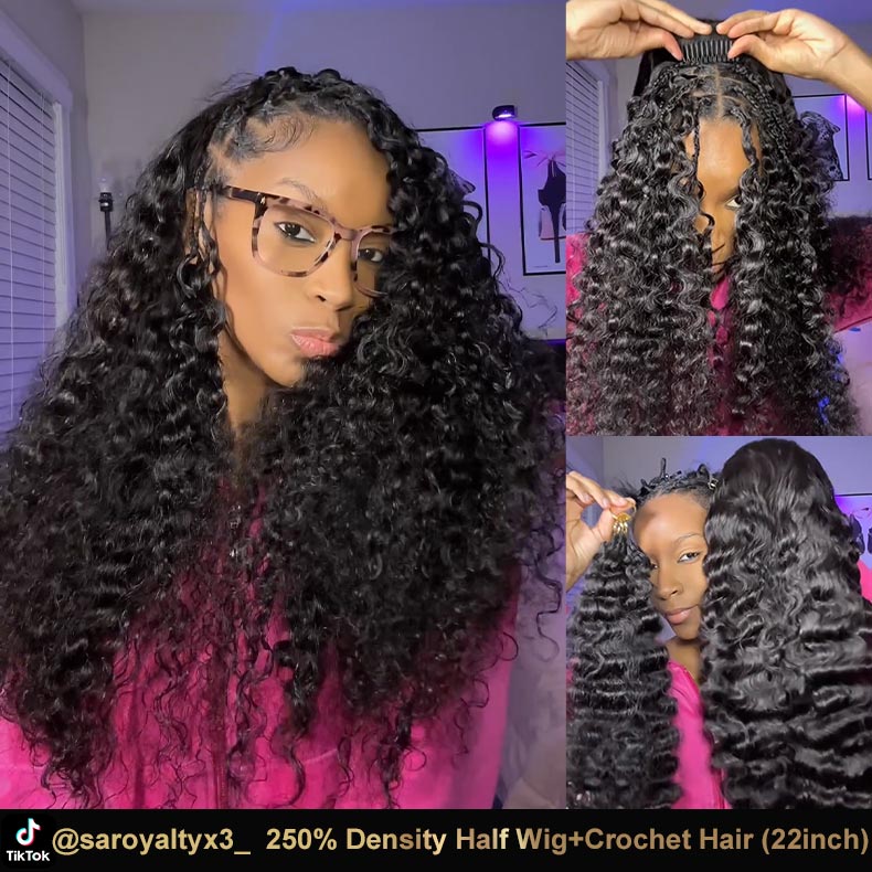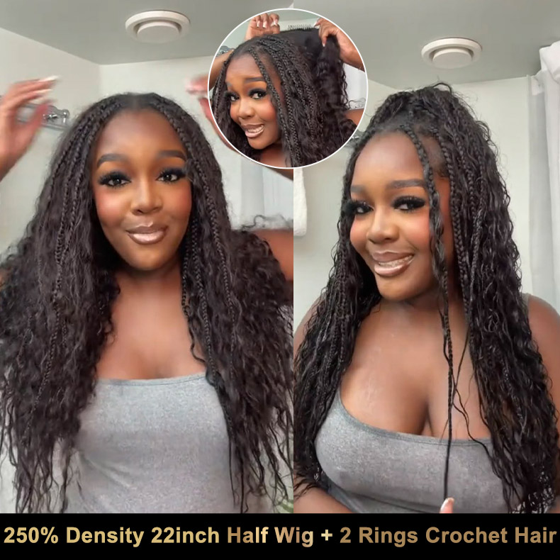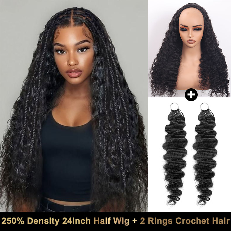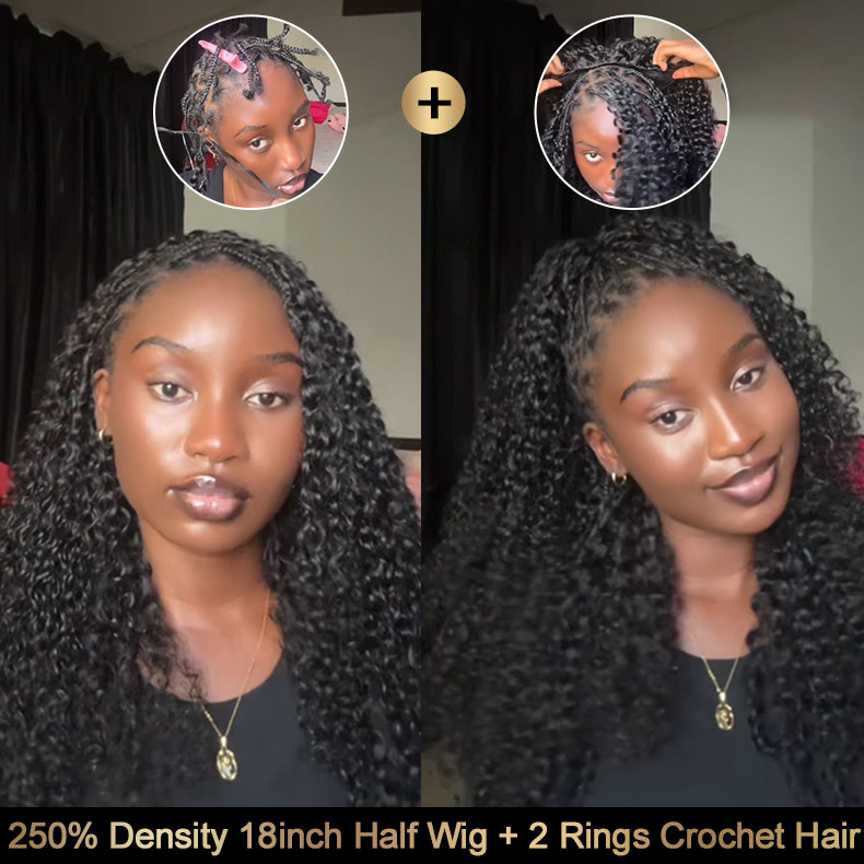 250 density half wig + 2rings crochet hair
