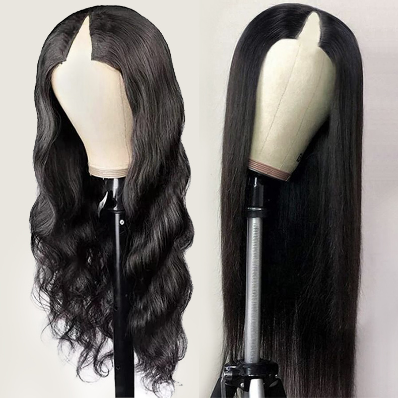 【No Glue No Sew In】13A Glueless V Part Wig Natural Color Virgin Hair Clip In Human Hair Wigs Match Leave Out Hair Natural Wig ULW331