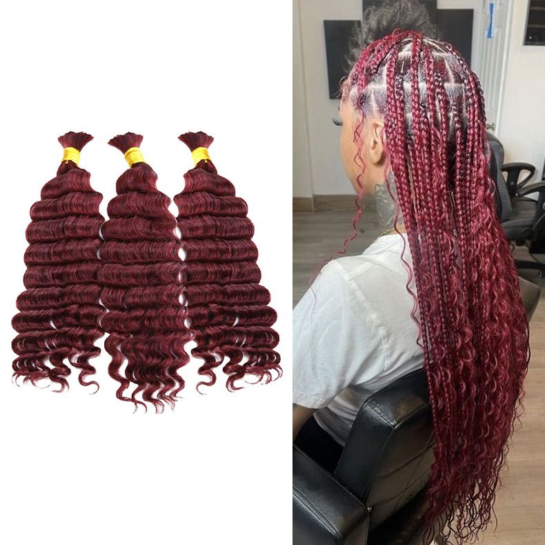 【12A 3PCS】99J#/27#/30# Deep Wave Hair Bulk Raw Human Hair For Bohemian Knotless Braids ULW029