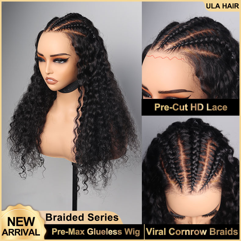 【Pre-Braided Glueless Wig】Ulahair 13A Cornrows Braids 5*5/ 9*7/13*6 HD Lace Glueless Wigs Deep Wave Ready To Go ULH158